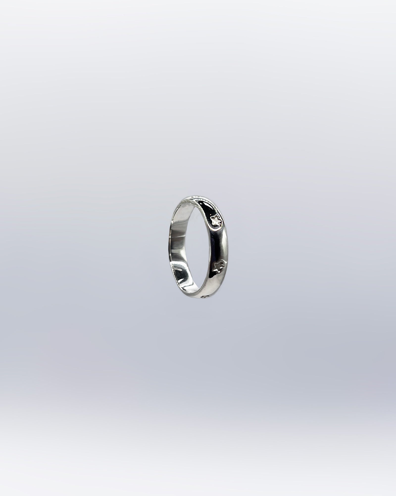 The Stargazer Ring is handmade in recycled sterling silver 925. The small star stamps mark its surface, giving it a quiet link to the night sky.